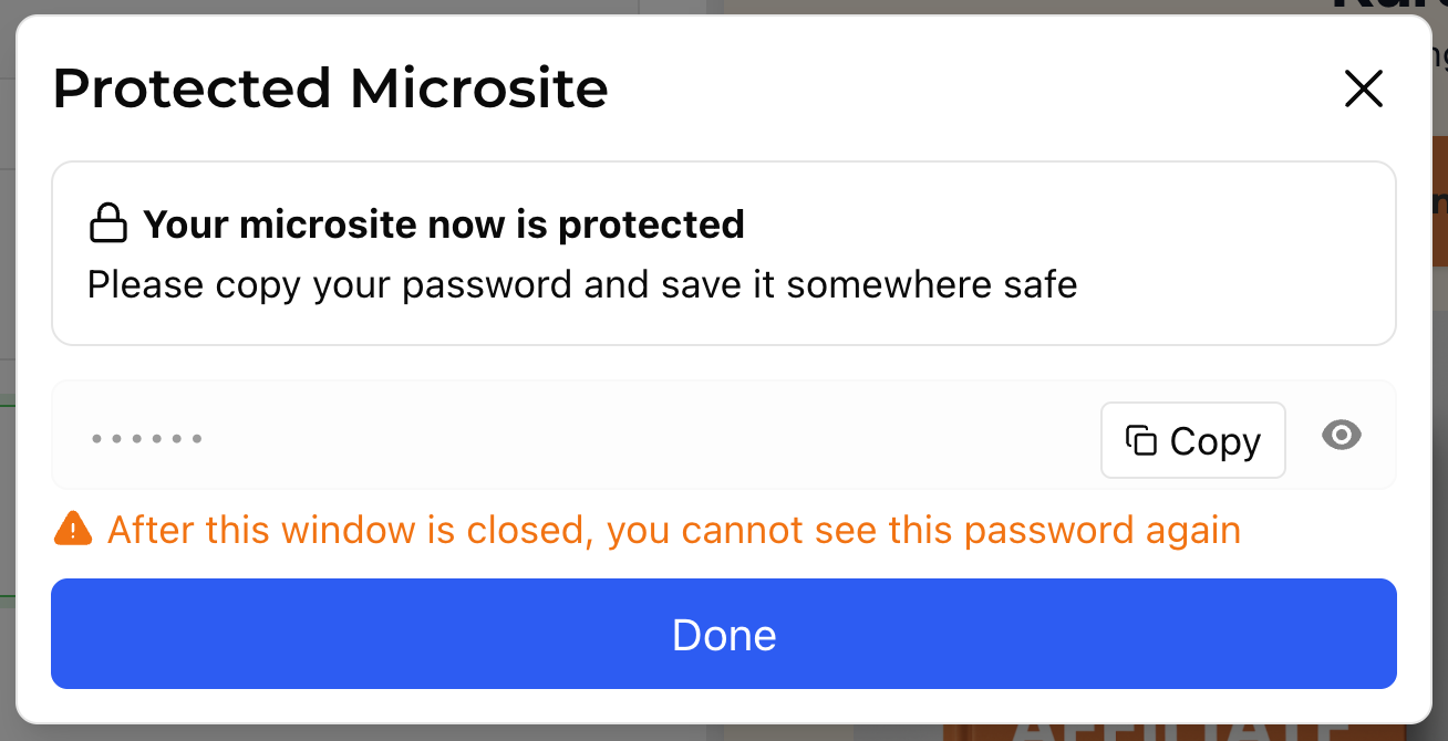 And you're done! Now your microsite can only be accessed by visitors who enter the correct password.
