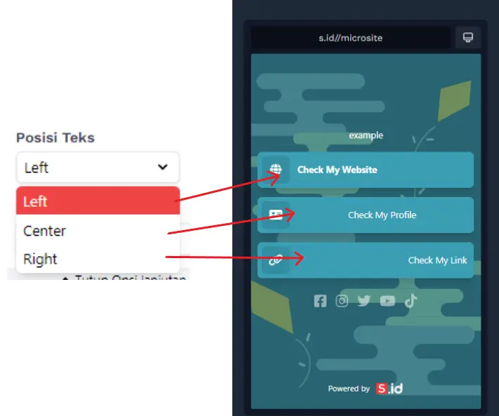 4. Posisi Teks digunakan untuk mengatur perataan horizontal sebuah teks.
