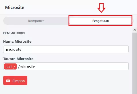 3. Pengaturan, Anda dapat mengubah Nama dan URL microsite Anda, lalu klik Simpan.