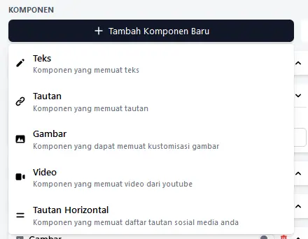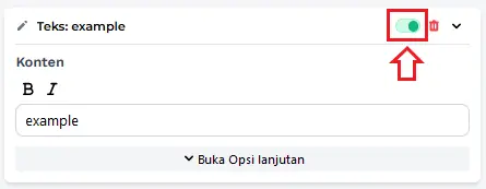 Jika Anda ingin menampilkan atau tidak menampilkan komponen microsite, geser ke kanan untuk menampilkan dan geser ke kiri untuk menyembunyikan.