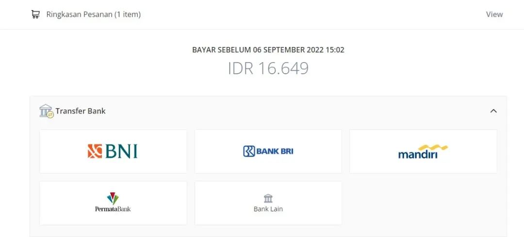 note : waktu pembayaran akan kedaluwarsa dalam waktu 1x24 Jam