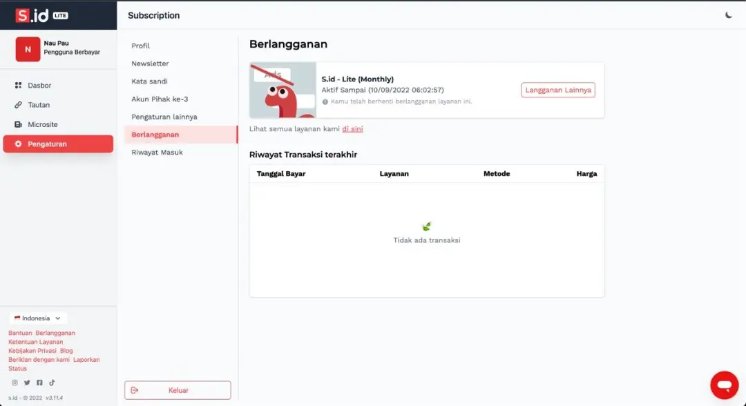 7. Riwayat pembayaran Anda akan ada di pengaturan - berlangganan.
