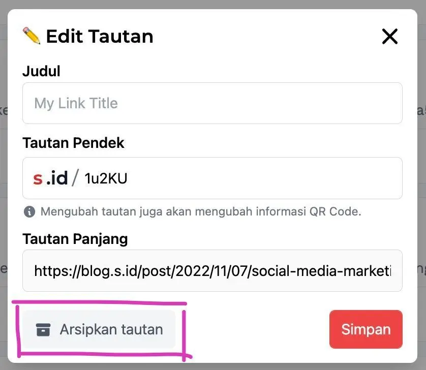Berikut cara mengarsip link di S.id :