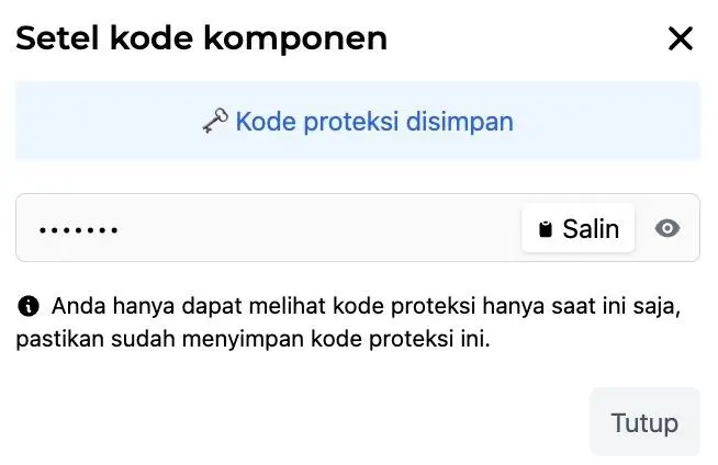 4. Salin kode anda, karena Anda hanya dapat melihat kode proteksi hanya saat ini saja, pastikan sudah menyimpan kode proteksi ini.