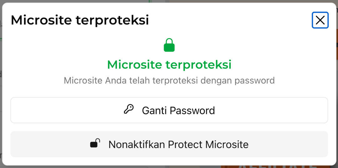Fitur Protect Microsite tersedia untuk pengguna dengan Paket Ultimate. Jika kamu pengguna gratis, silakan upgrade untuk mengakses fitur ini di s.id/subscription.