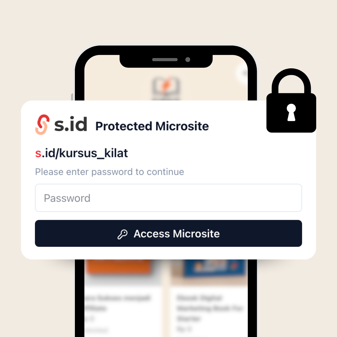 Fitur Protect Microsite dari s.id memungkinkan kamu untuk melindungi akses ke microsite dengan kata sandi khusus, sehingga hanya orang-orang tertentu yang bisa melihat isi micrositemu.
