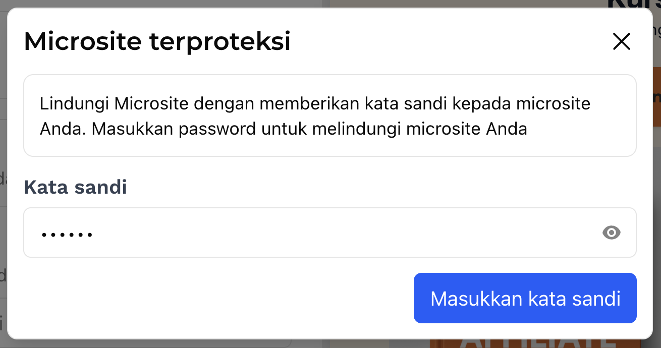 Setelah itu selesai. Microsite kamu sekarang hanya bisa diakses jika pengunjung memasukkan kata sandi dengan benar.