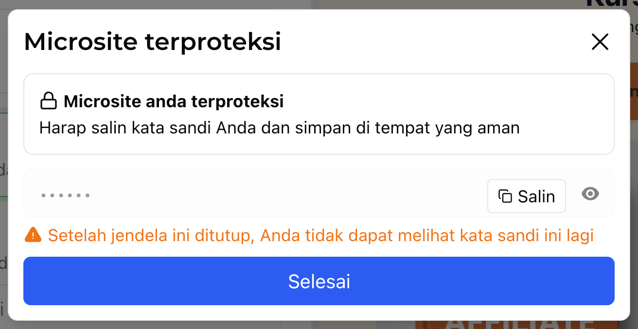 Pastikan kamu mengingat dengan baik kata sandi atau password dari protect micrositemu, lalu klik "selesai"